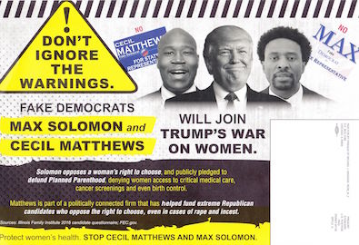 I was referring to the Max Solomon/Cecil Matthews mailer, they’re running for state rep.