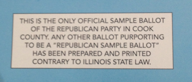 Several township committeemen are concerned that the sample ballots sent out by the Cook County GOP contain a note that declares the sample ballot as the only “official” sample ballot for the county, and that any others were to be ignored. Wheeling Township Committeeman Ruth O’Connell said that left down ballot candidates with no endorsements. Wheeling also endorsed Jeanne Ives to be the IL GOP gubernatorial nominee over Bruce Rauner - the “official” Cook County GOP pick.