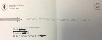 Lots of folks in the neighborhood [are upset] about this today — we’re getting a ton of calls and visits to the [redacted] about it. It’s a letter from an outfit called the “Illinois State Voter Program” that looks suspiciously like the earlier mail sent out by that Lipinski front group, United for Progress. (Although there are no “paid for” disclaimers on this piece.)