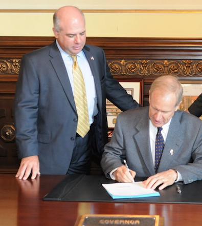 And, if you somehow don’t know, that’s Sen. Sam McCann with Gov. Rauner.