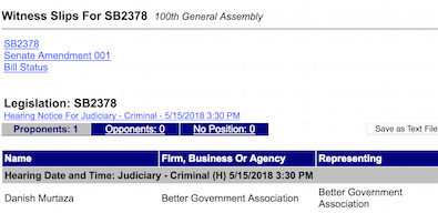 The fact that the Better Government Association was actively lobbying in favor of Raoul’s bill was never mentioned in the BGA’s story about Raoul’s bill.