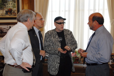 The 60-year-old rocker charmed state officials, lawmakers, legislative staff and bystanders during his first visit to the Capitol. He hugged most everybody who walked by and stood for photos with the hordes of people who lined up for a glimpse.