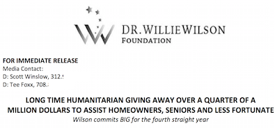 Reached by phone, F. Scott Winslow, Wilson for Mayor campaign spokesman, told WGN News Sunday’s event was “absolutely not” a campaign event. Winslow says since Wilson launched his second bid for Chicago mayor, he’s probably given away $500,000.