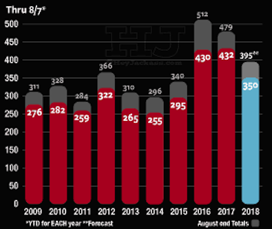 * Chicago homicides over the past decade, with a 2018 forecast…