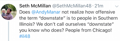 @SethMcMillan hate to break it to you and your crack P.R. team, but you are running for the State Senate in Central Illinois, not Southern Illinois.