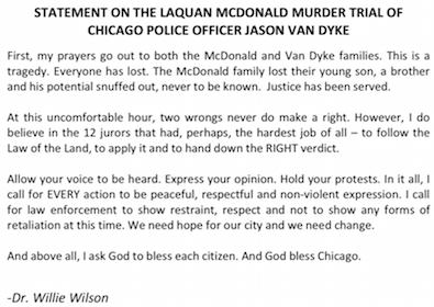 I’M APPEALING TO EVERY PERSON IN CHICAGO TO WISELY AND COMPASSIONATELY REFLECT ON THE DEATH OF LAQUAN McDONALD AND THIS GUILTY VERDICT OF JASON VAN DYKE.