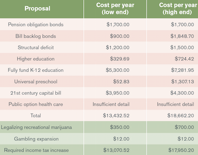 Anyway, the Illinois Policy Institute has come up with its own “guesstimate” of JB Pritzker’s revenue needs based on what he’s said and what’s on his website…