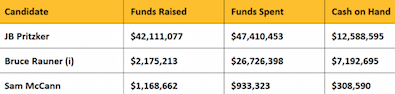 At the end of the quarter, Rauner still had $7.19 million in cash in his campaign fund.