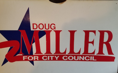 I was pretty proud of that sign, but the “M” wasn’t visible at night because of the blue background. So, it looked like “Doug Iller” was running for council.