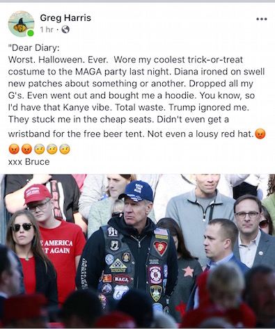 Maybe in a future episode of Dad’s Home State, Diana goes to a north shore party and passes this snapshot around, saying it’s “just adorbs” what Bruce has to do to connect with the rubes. Partygoers roll their eyes and chortle.