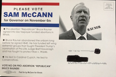 At least make the effort to show you’re not just “JB Pritzker’s associate” by also throwing in on the mailer that Pritzker supports public-paid abortion access too. It looks too cute by a half when he only attacks Rauner for it.