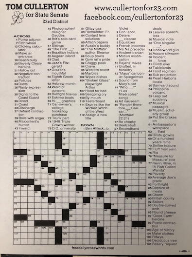 I recently picked up a copy of Cullerton’s crossword puzzle, and believe me, it’s tough!