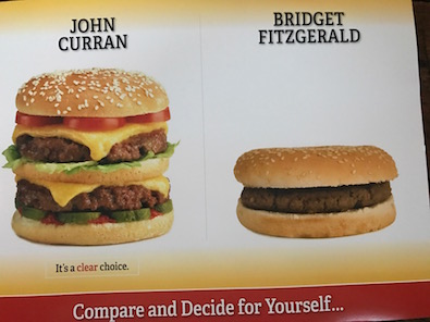 If each beef patty represents a public pension then Fitzgerald’s burger is the one pension she might take as a state legislator while Curran’s burgers are the two public pensions he already has which allow him to cros about not taking a third.