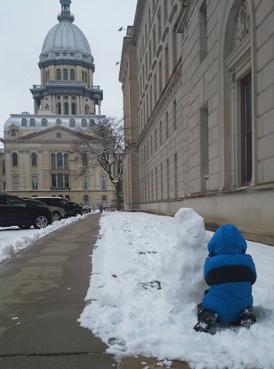 “Mommy, why did that happy man with the apple call my snowman ‘an enduring monument to Rauner’s achievements”?