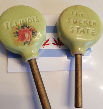 Of course the modified Chicago flag below your tchotchkes have us all wondering what those particular suckers are made of.