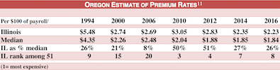 That said, the Oregon has study long been used by the business community as their highlighter to underscore their contention that Illinois is out of step in terms of WC costs. What we can say about the Oregon study (in that it comes out every 2 years) is that acts as somewhat of a constant and that study shows Illinois to be exactly where the business community wants Illinois to be, “in the middle of the pack.”