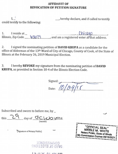 Interesting point, Rich. They still may be able to kick Krupa off the ballot even if they decide to withdraw their objection based on the revocations. There are other reasons that were cited in the objection (which is available on the Chicago Board of Elections website) that can be used to invalidate signatures.