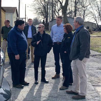 Southern Illinois journalist here: That’s Patrick Windhorst second to the right of Pritzker in the light blue button-up. The Ohio River isn’t expected to crest until this weekend, so water is still rising. A lot of people don’t understand how hard it is to live in these counties when they’re taken over by floodwaters.
