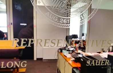 * If you’ve ever been to the 2nd Floor of the Stratton Building, you know that House members’ names are painted on the glass doors of the main hallway outside their respective offices.
