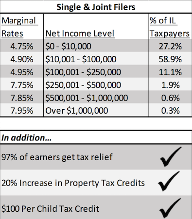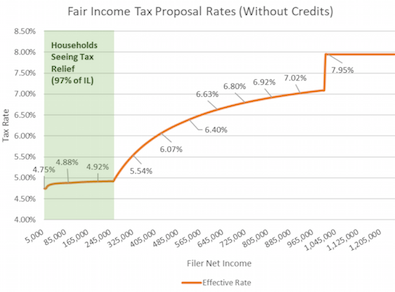 “Governor Pritzker’s plan lowers tax rates for 97 percent of Illinois taxpayers while making sure the wealthy pay their fair share. This proposal will put our state on the path towards fiscal sustainability and good governance.