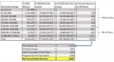 The Governor’s Office of Budget and Management worked with the Department of Revenue to arrive at a realistic projection for the amount generated by the fair income tax.