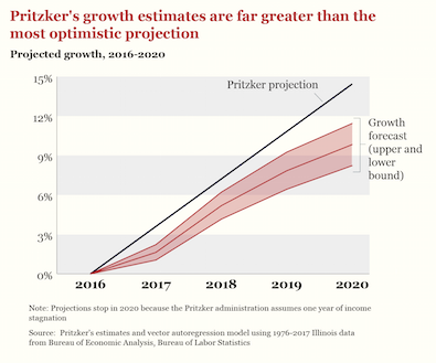 J.B. Pritzker is relying on a similar growth fantasy in Illinois to sell his tax plan. A one-page summary released by the governor’s office March 15 reveals Pritzker’s tax promises rely on growth estimates that are higher than the state’s five-year average, higher than the state itself projected as recently as November 2018 and far more optimistic than most economists predict.