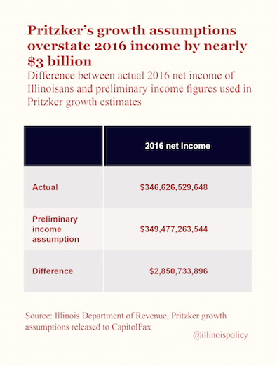 By using outlandish projections for income growth, the administration alleges that a graduated income tax plan is capable of bringing in an additional $3.4 billion while avoiding tax hikes for 97 percent of Illinoisans. Unfortunately, because the governor’s baseline is far off, his plan will not deliver on his promise of closing the structural deficit. When his plan ultimately fails to bring in enough revenue, he will have to raise taxes on middle-class Illinoisans.