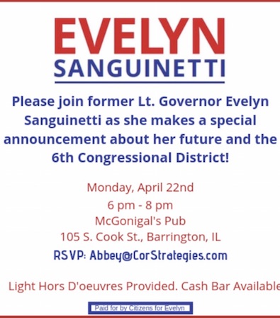 Trump will almost certainly lose this district, and I doubt there will be a significant number of Democratic president/Sanguinetti voters to make up the difference. Rauner may have won the 6th last year, however that was largely due to Pritzker being a poor fit for the collars. Rauner is not exactly popular here and were she to run it would open all sorts of attacks on the Rauner administration’s shortcomings.