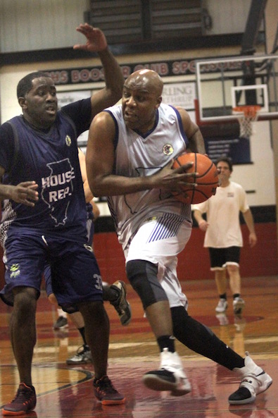 * Attorney General Kwame Raoul (a former state Senator) takes it to the lane during this week’s House vs. Senate basketball game…