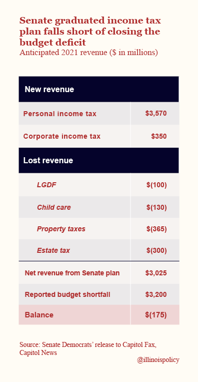 But the progressive tax plan currently moving through the General Assembly would fall $175 million short of this goal, according to Senate Democrats’ own numbers.