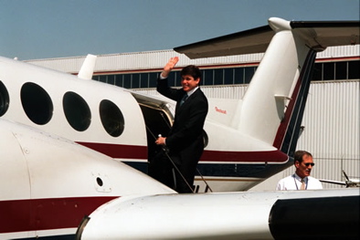 Blago steps into the Federal Bureau of Prisons jet, and waves a final goodbye to his last supporter, before he heads off to Club Fed.