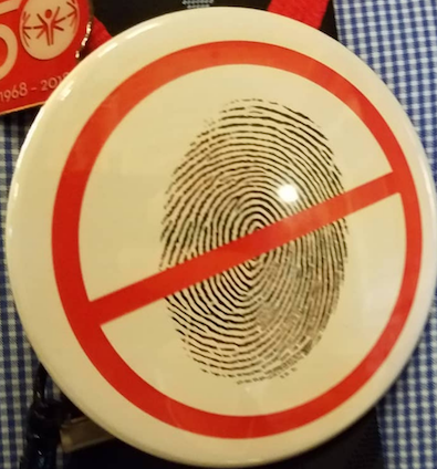 Illinois House Republicans sporting buttons with fingerprints crossed out as they prepare to debate bill to mandate fingerprints for gun owners.