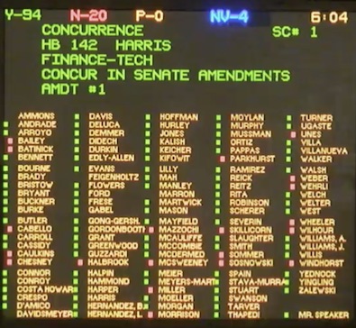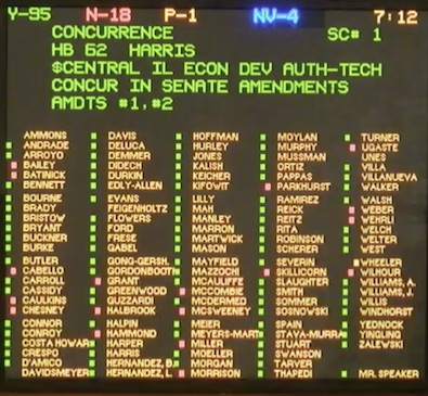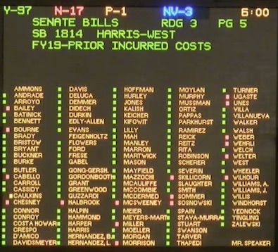* The new operating budget revenues and House GOP Leader Jim Durkin’s pro-business reforms (SB689) sailed through the chamber, with the Eastern Bloc and others like Reps. Dave McSweeney and Allen Skillicorn voting “No”…