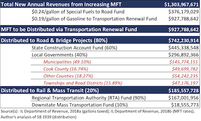 * Click here for a decent explanation of how the new revenues will be divvied up. It was put together by a group affiliated with Local 150 of the Operating Engineers. Here’s a couple of charts…