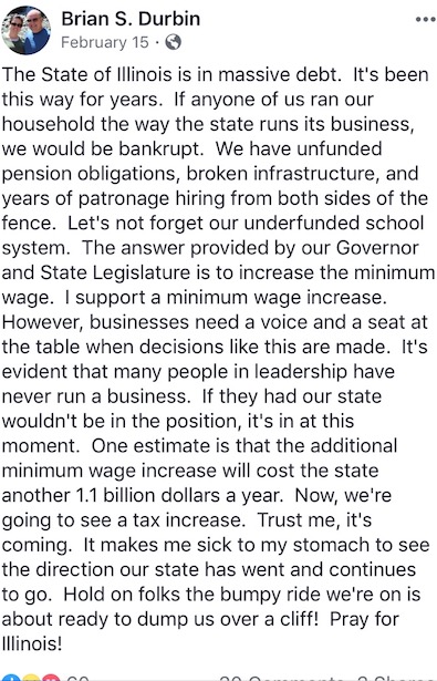 Durbin joins Rauner in phony tears about the stare’s financial condition while gorging from it. That’s a big reason why Rauner was the worst governor, because he slammed others and waged war while gorging at the public employee pension trough and causing more financial and human damage than anyone, per capita.