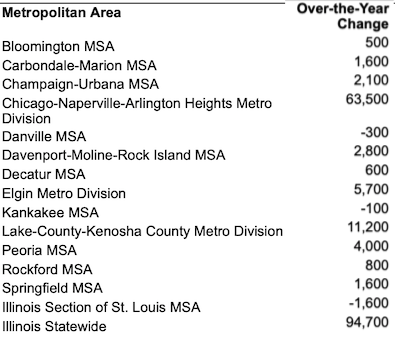 As a result, the unemployment rate continued to drop, off .3 percent to 4.1 percent in the Chicago area and down .7 percent to 4 percent statewide.