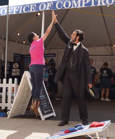 Treasurer Frerichs photobombs the comptroller’s governor’s day publicity.