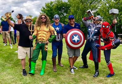The person wearing the Trump mask was from Harvey-based Party District Entertainment, which has provided entertainment at previous Sandoval fundraisers. Sandoval’s campaign fund has paid the company $7,700 since 2017. The company provides costumed characters, DJs and other services for parties and events. The “gun” in the photos was a novelty beverage dispenser.