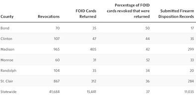 In St. Clair County, FOID cards were returned just under 36 percent of the time after they were revoked from 2015-18, according to Illinois State Police data obtained by the Belleville News-Democrat.