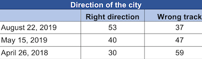 You just don’t see right track/wrong track numbers completely flip like that every day. Chicagoans appear to believe they’ve given their city a chance to succeed by overwhelmingly electing Lightfoot.