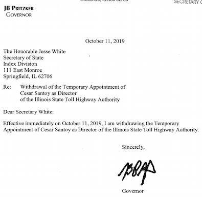 Santoy’s name and company are listed in the federal search warrant of Sen. Martin Sandoval’s Statehouse office. Santoy’s attorney claimed his client is not a target. The governor called on Santoy to step aside earlier today.