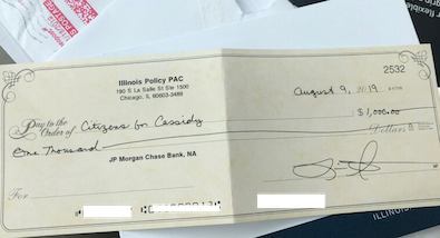 Cassidy said she’s worked with the Illinois Policy Institute on criminal justice reform, campaign finance reform and ethics. So, she’s depositing the check and not refunding it.