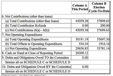 * You can see Laesch’s quarterly fundraising report here. Below is a screen cap of the summary…