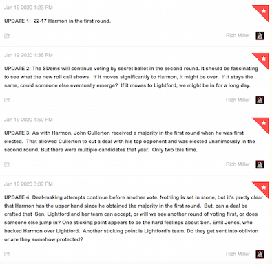 The expected secret ballot on at least the first round of voting has allowed a few members to tell both sides that they’re with them. It has also allowed some members who have made up their own minds to just stay mum about their pick and vote without fear of retribution. A few are going in without knowing which way they’ll vote. The second round could be a voice vote, and then they’ll know who is with whom (although a couple of folks have intimated that they won’t vote unless it’s a secret ballot).