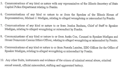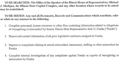 Police requested personnel, human resources or other files “containing information related to allegations of wrongdoing or misconduct by former Illinois State Representative Jack D. Franks.”