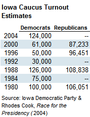 * From Pollster.com, Iowa caucus historical turnout. Miserable…