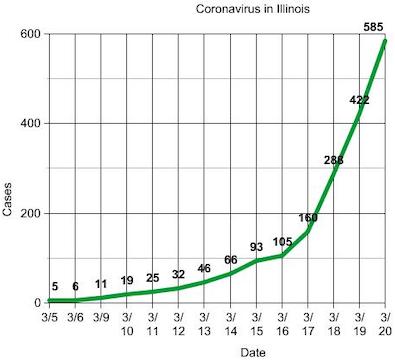 We have looked closely at the trajectory of this virus in countries like Italy and China left unchecked cases in Illinois will rise rapidly. Hospitalization systems will be overwhelmed protective equipment will become scarce, and we will not have enough healthcare workers or hospital beds or ventilators for the overwhelming influx of sick patients. The only strategy available to us to limit the increase in cases and ensure our healthcare system has capacity to treat those who become ill, is to mitigate the spread of Coronavirus in the most robust manner possible.