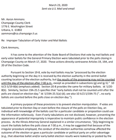 Many of the early votes cast in Champaign County for the primary election may have been counted the night before Election Day, in violation of state law.