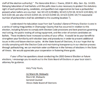 The fourth paragraph of the letter from the Illinois State Board of Elections Counsel is as a very professional way to suggest that “you sir, are incompetent” . . . . .