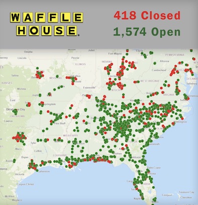 FEMA does have an informal waffle house index. It is based on how fast the waffle house reopens and extent of menu being cook. If closed and won’t be reopened any time soon, good indication of a pretty bad disaster.